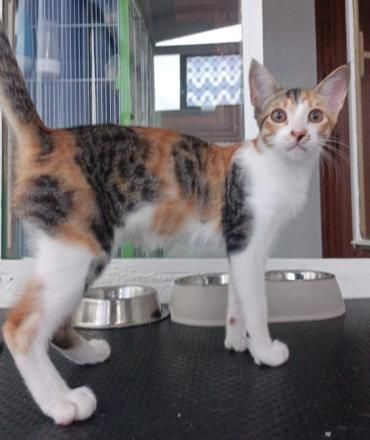 Karla wäre eine gute Einzelkatze. Von anderen Katzen möchte sie nämlich im Augenblick nichts wissen. Wahrscheinlich hat sie draußen schlechte Erfahrungen gemacht, denn sie kam mit Bisswunden im Ohr.